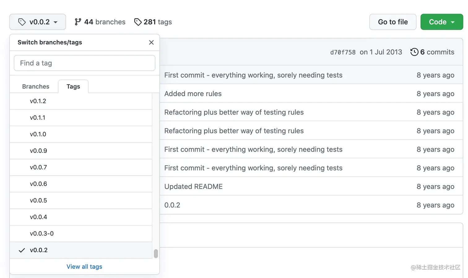 准备了解一下 eslint 的原理,就先看一下最早一版 eslint 的实现吧。github 打了 tag 的最早的版本就是 0.0.2 了,提交记录是八年前了。