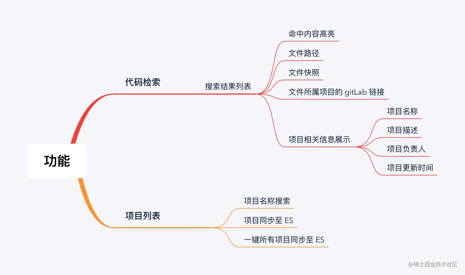 大概流程就是通过主服务可执行脚手架命令从 GitLab 服务拉取当前项目文件数据,然后将项目文件数据转换成 JSON 文件数据并同步至 ES,同时部分文件、项目信息等数据会持久化存储。最终,主服务可调用 ES 服务的搜索接口来实现项目文件数据搜索的功能。