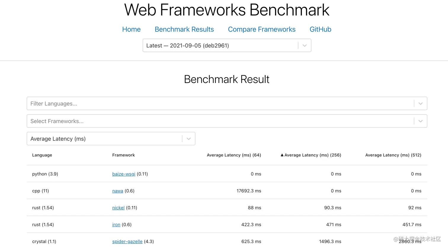 web-frameworks 测出来的平均延迟,从低到高排序:
