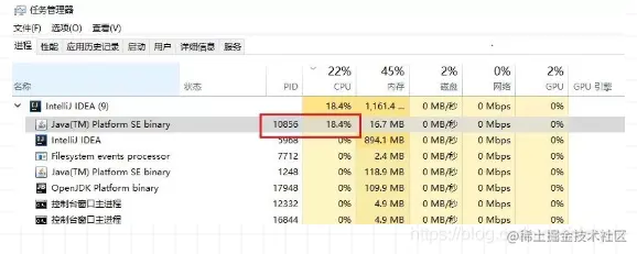 手边没有windows server机器,我以win 10为例,截图给大家看一下,先调出PID显示项!
