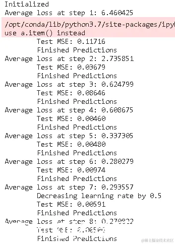 在这里,你将训练并预测几个历时的股票价格走势,并观察预测结果是否随着时间的推移而变得更好或更差。