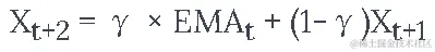 上述公式基本上是计算t+1时间步长的指数移动平均线,并将其作为超前一步的预测。 γ决定最近的预测对EMA的贡献是什么。例如,γ=0.1只能得到当前值的10%进入EMA。因为你只取最近的一小部分,它允许保留你在平均数中很早看到的更早的值。请看下面用于预测向前一步的情况。
