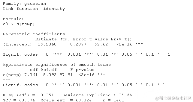 在这个例子中,我们保持模型的简单性--使用高斯数据,单一预测因子。我们对温度与臭氧进行建模,我们将输出默认的偏残差图。
