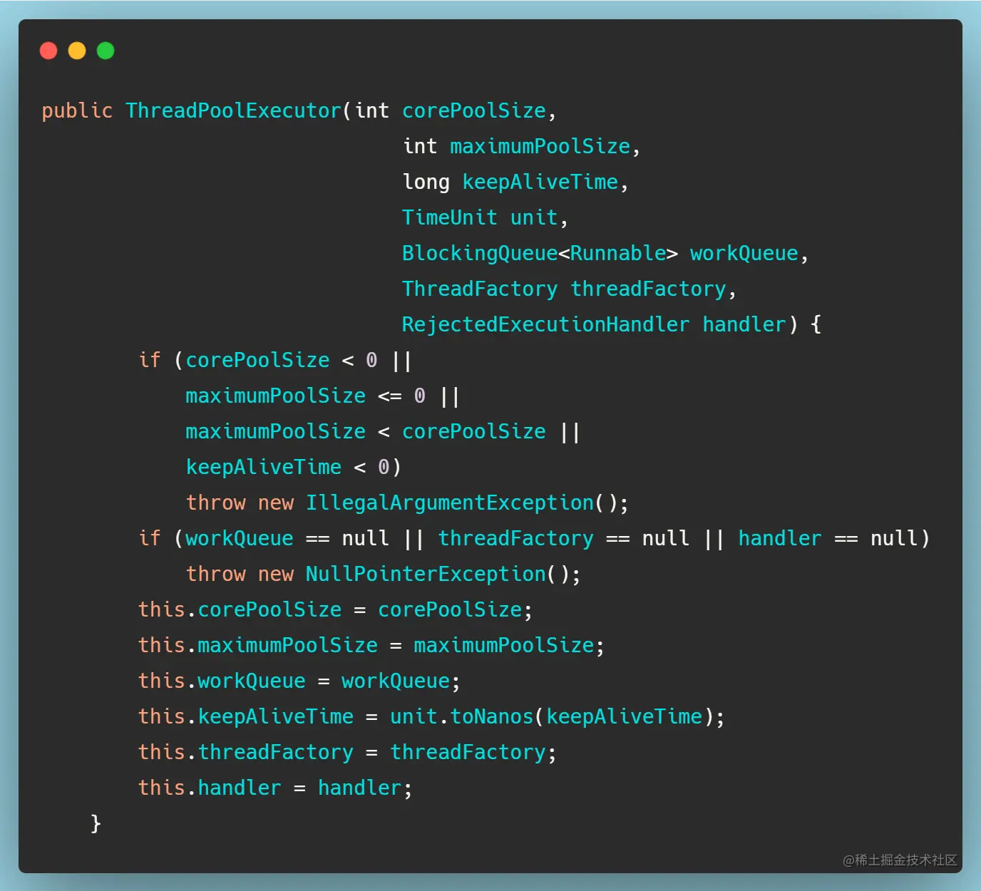 通过ThreadPoolExecutor的构造方法我们来看一下线程池在创建的时候都做了些什么。