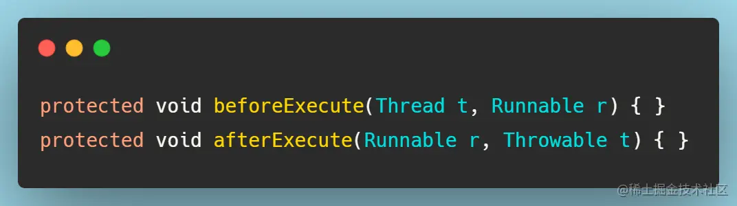 在线程池执行任务的runWorker(Worker)方法中我们发现,会在任务执行前和执行后有两个方法。