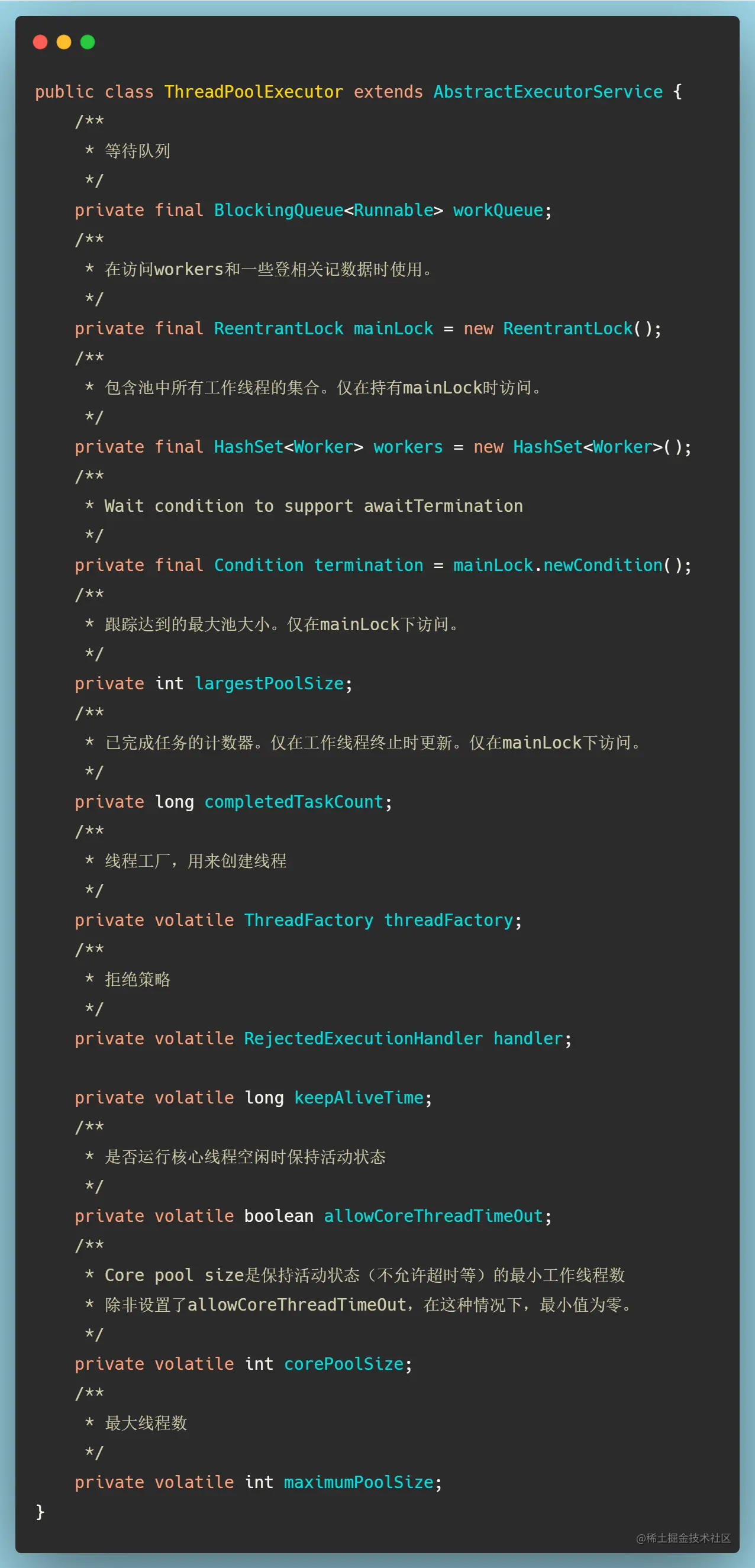 在这之前我们需要先知道ThreadPoolExecutor中一些比较重要的变量,可点开下图查看。