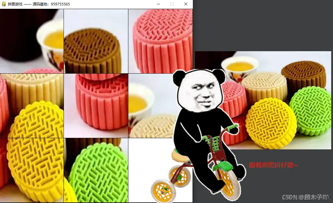 本文是制作一款Python月饼牌儿的拼图小游戏哈!