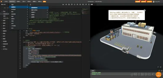 ThingJS的快捷代码功能,从场景到综合,每个快捷代码都能简化我们的开发,快捷代码有拥有以下六个主要功能:场景、创建物体、控制物体、事件、控制层级、地图、摄影机、界面、控件、引用资源、综合。