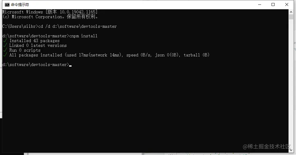 打开cmd,cd到文件位置,输入cnpm install,安装依赖。
