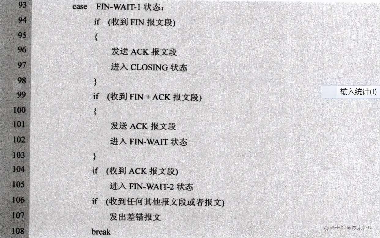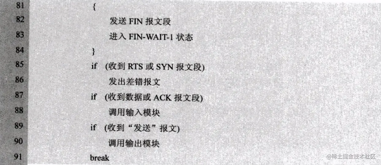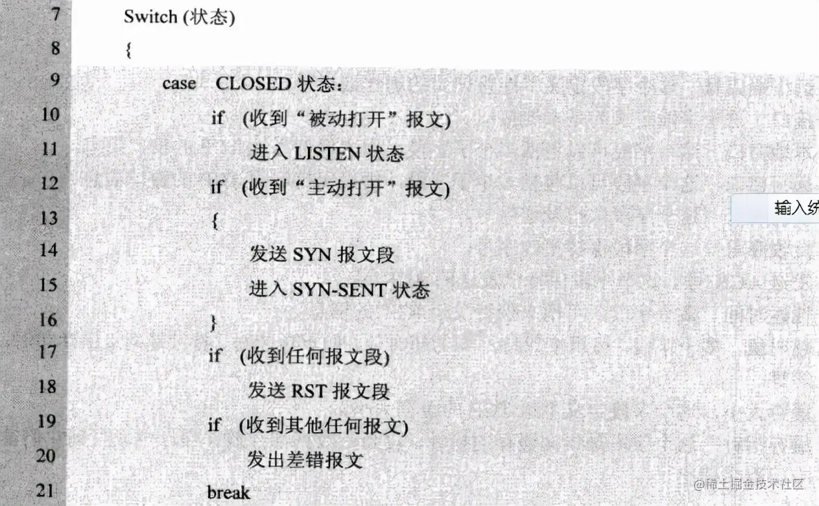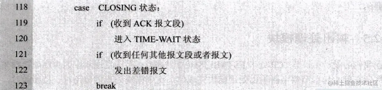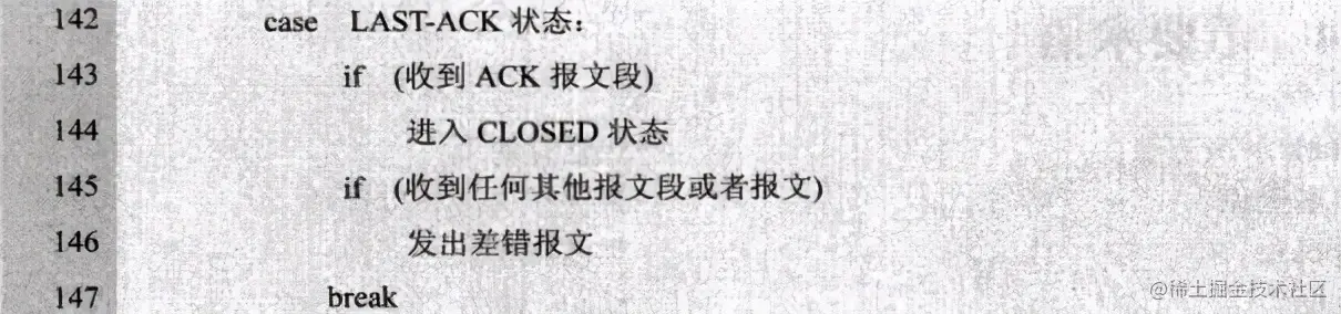 在此,将《TCP/IP协议族》中每一个状态的转换伪代码整理下: