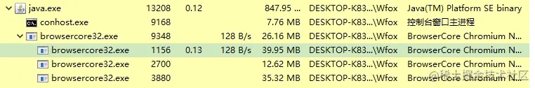 当Burp Suite唤起内置浏览器browsercore32.exe打开网页时,browsercore32.exe会创建Renderer进程及GPU加速进程。