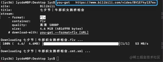 you-get -o /Users/lyc https://www.bilibili.com/video/BV1Ef4y137ex