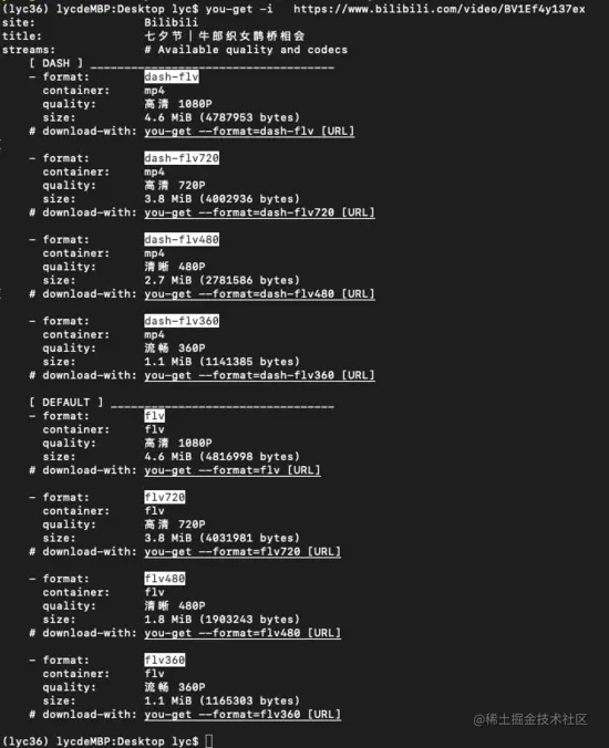 #you-get --format=dash-flv -o /Users/lyc/ https://www.bilibili.com/video/BV1Ef4y137ex