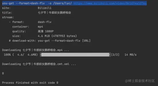 通过代码去使用you-get就可以成功把视频下载保存到指定位置