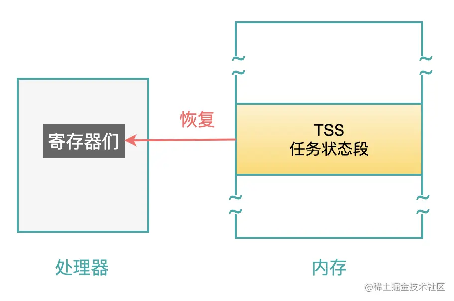 然后,把新的任务的 TSS 段中的内容,复制到处理器的各寄存器中,并且把 TSS 地址赋值给 TR 寄存器;