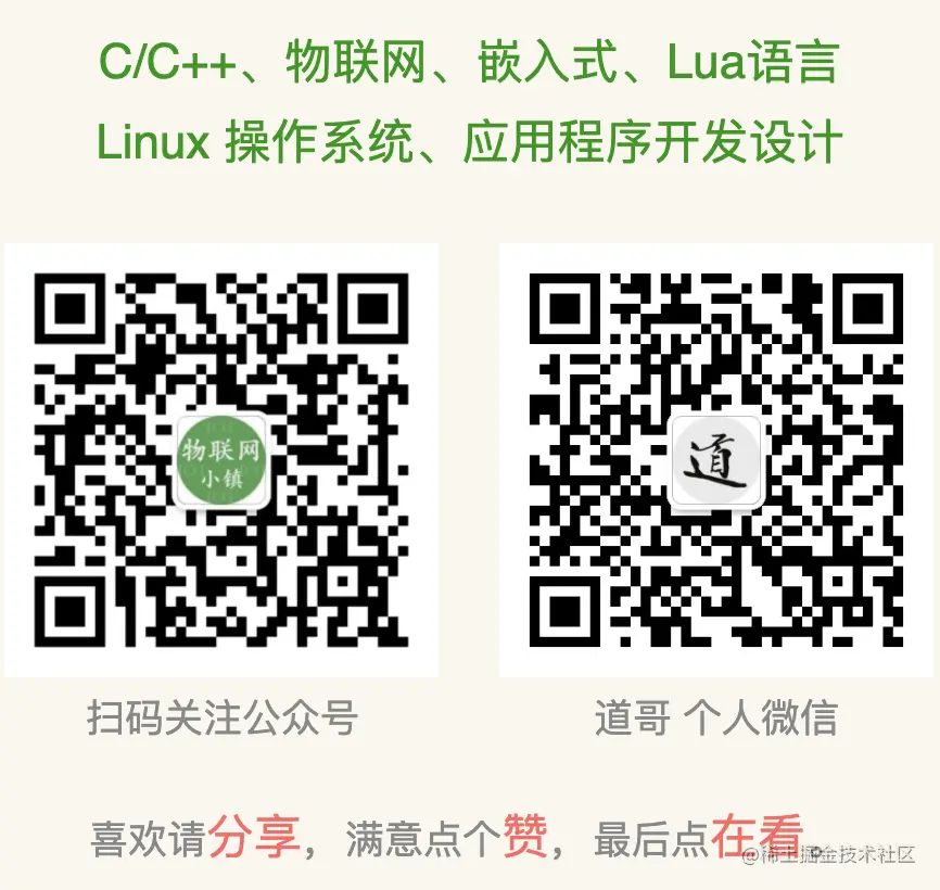 公众号:【IOT物联网小镇】,专注于:C/C++、Linux操作系统、应用程序设计、物联网、单片机和嵌入式开发等领域。 公众号回复【书籍】,获取 Linux、嵌入式领域经典书籍。