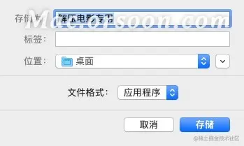 再将该应用程序进行存储保存,并命名为“解压电影专用”,点击存储即可生成我们专门用于解压电影的应用程序。