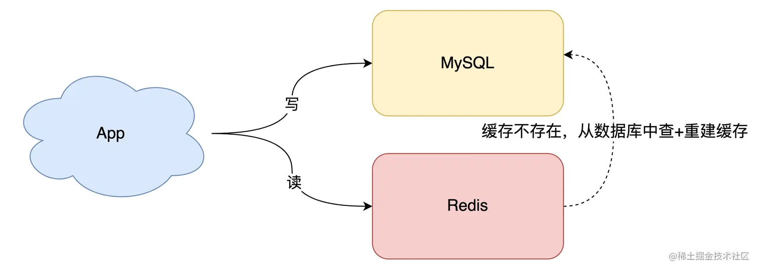 - 读请求先读缓存,如果缓存不存在,则从数据库读取,并重建缓存