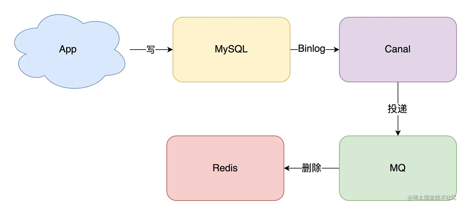 拿 MySQL 举例,当一条数据发生修改时,MySQL 就会产生一条变更日志(Binlog),我们可以订阅这个日志,拿到具体操作的数据,然后再根据这条数据,去删除对应的缓存。