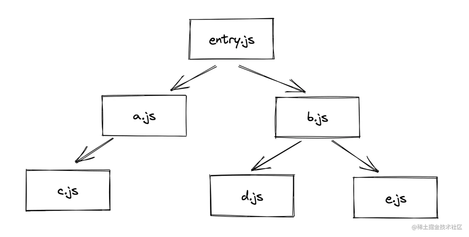 打包器会从入口文件开始,尝试建立模块(即js文件)间的依赖关系,也就是刚才我们讲的顺着线头开始滤清整条线的走向。