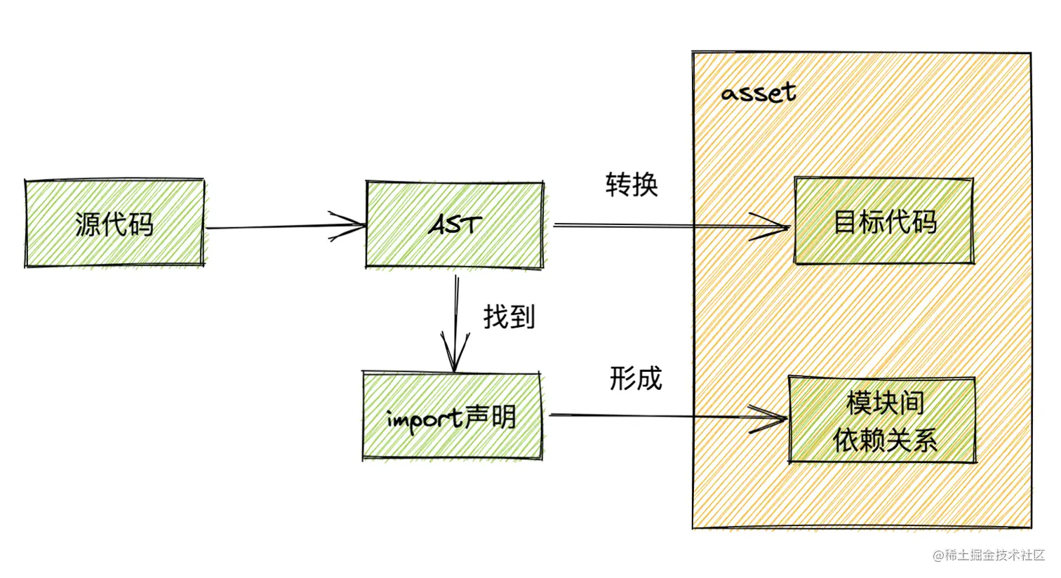 右边包含目标代码和模块间依赖关系的数据结构被称为asset。