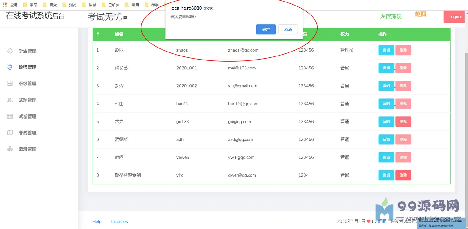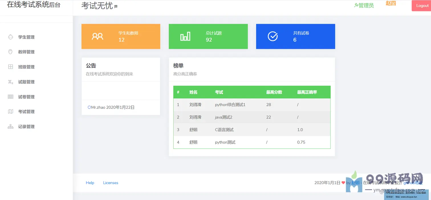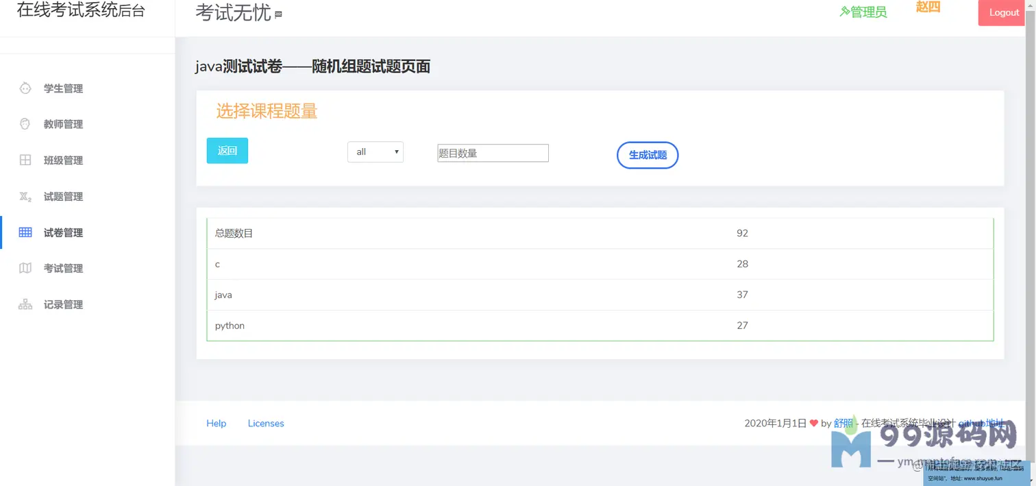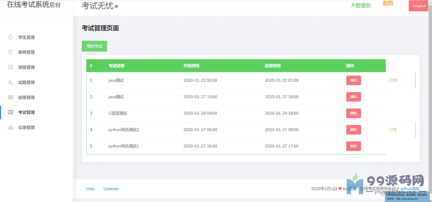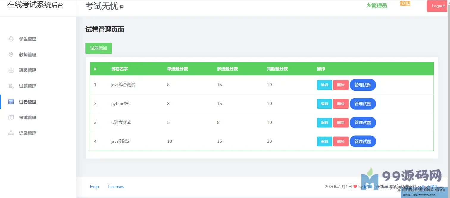 学生在线考试管理系统,分为管理员与教师、学生三种角色;
