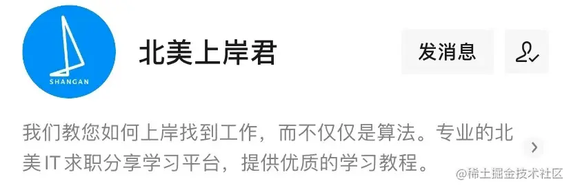 最后,有想法出国做程序员的朋友,推荐一个公众号:上岸算法。上面每周会固定时间发布各北美大厂真题题解,以及leetcode题解,刷题必备。另外,他们的课程质量也很不错,涵盖算法、ux design、ood、面试问题指导、ds、ai等各方面。还有免费试听服务,感兴趣的可以去看看。