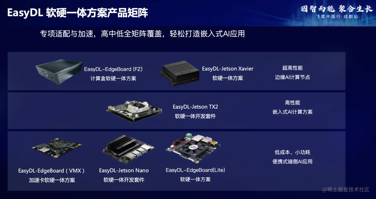 EdgeBoard是百度面向嵌入式与边缘部署场景打造的AI视觉硬件方案,可无缝兼容百度大脑丰富的工具平台与开放能力,具有高性能、低成本、使用简单等三大优点,可广泛适用于智能设备打造、科研教学、安防监控、餐饮卫生监控、工业质检、交通巡检、医疗诊断、智能零售等领域。