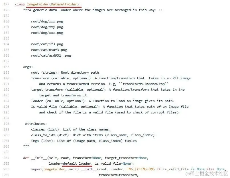 那么torchvision的datasets.ImageFolder如何加载图片呢?我们来看看ImageFolder的构造函数,这里面会有一个默认的default_loader: