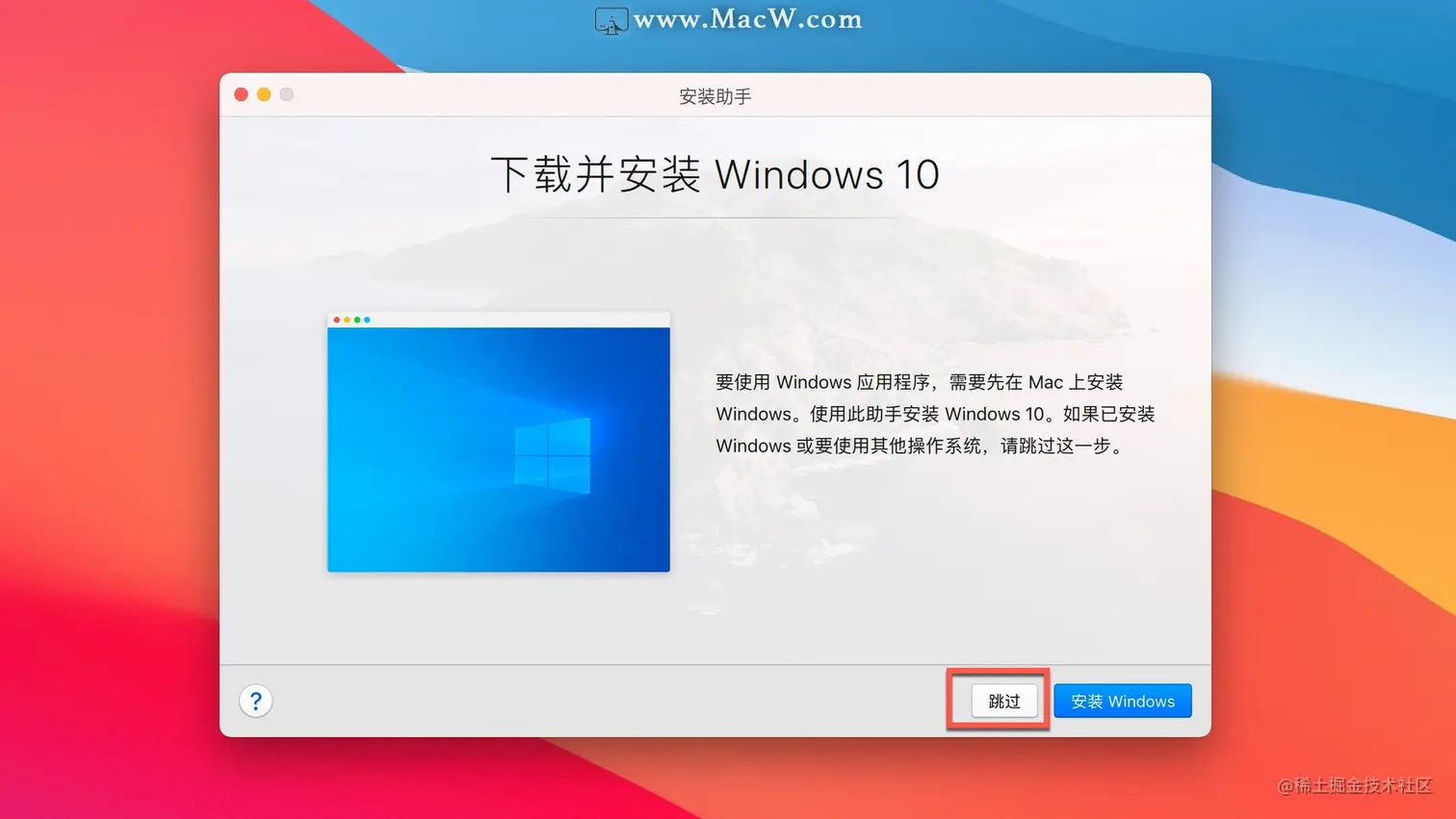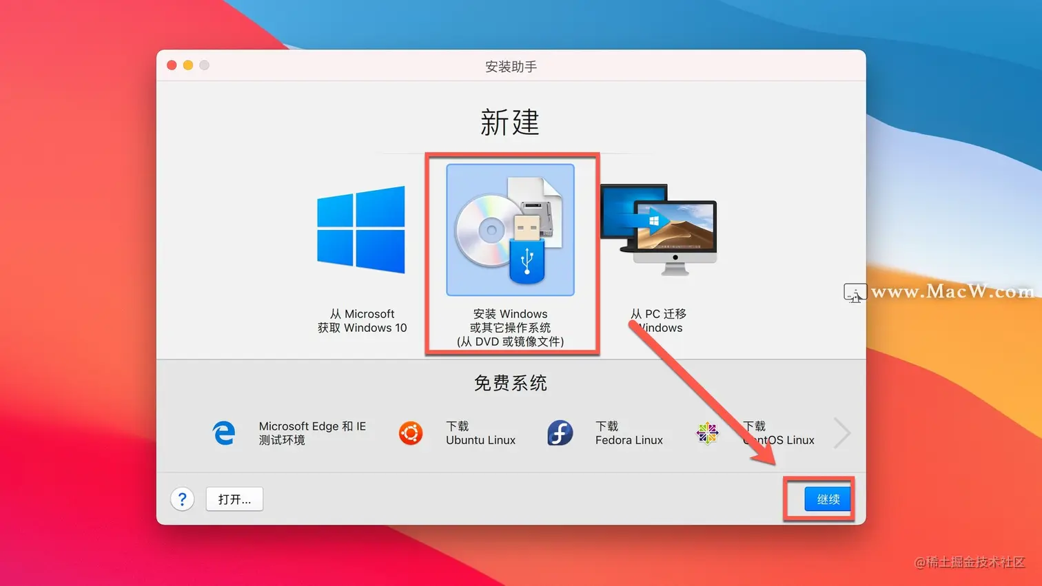 点击安装 Windows或其它操作系统,接着继续