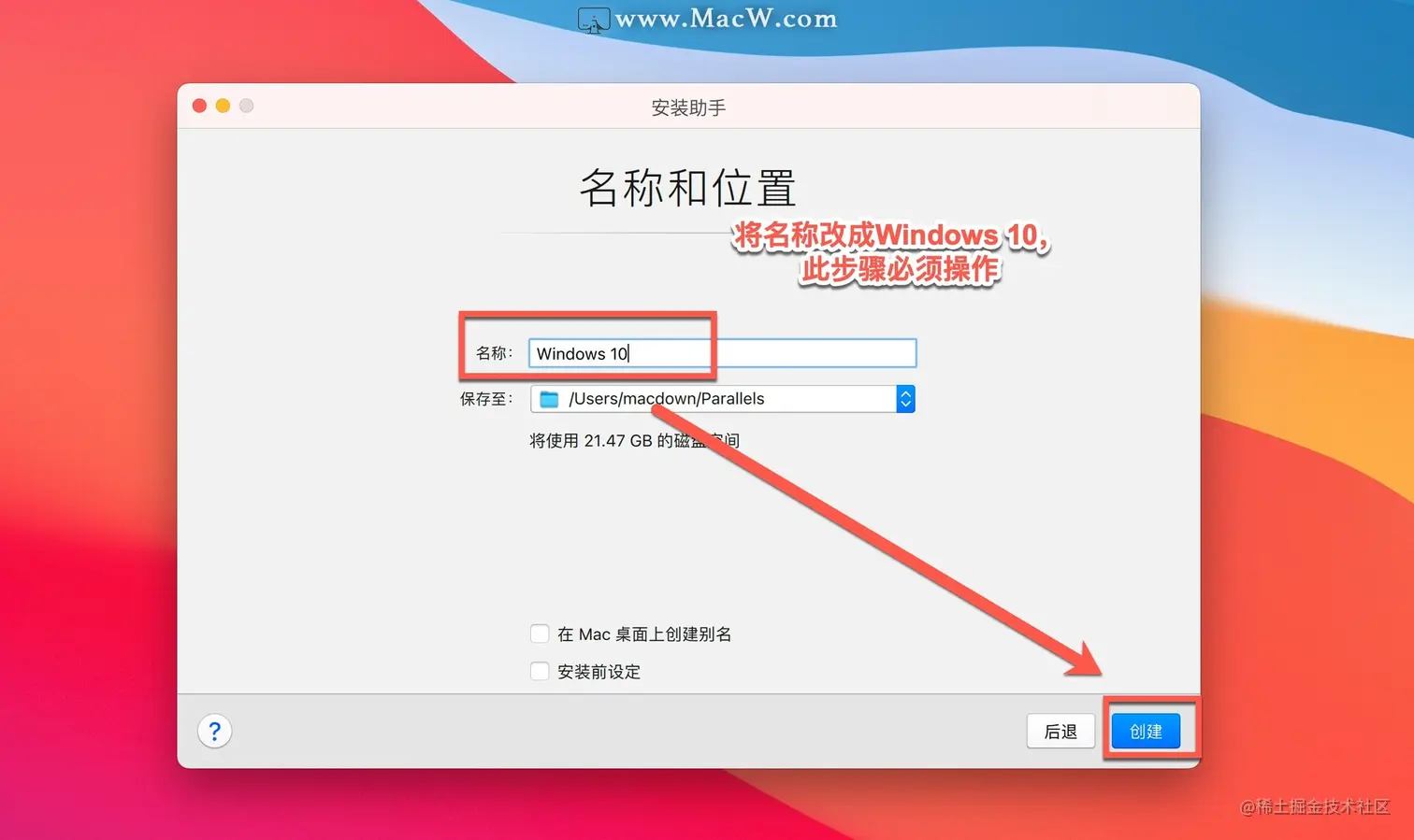 将名称改为Windows 10,点击创建,PD17会自动安装win11系统,只需等待即可!