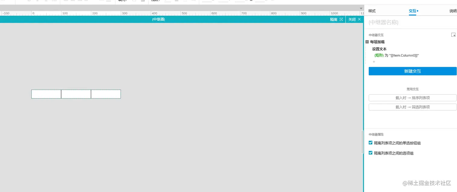 双击中继器,增加列,双击进入之后直接删掉原来的矩形,想要多少列就拖几个矩形依次并排展示。