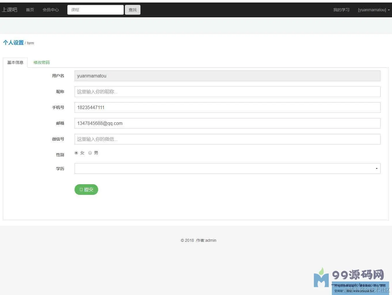 用户账号/密码: yuanmamatou/123456