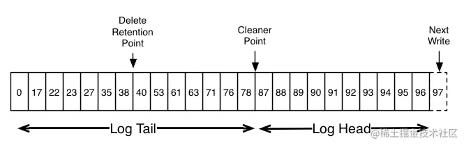 通过消息的key和空负载(null payload)来标识该消息可从日志中删除。 这个删除标记将会引起所有之前拥有相同key的消息被移除(包括拥有key相同的新消息)。但是删除标记比较特殊,它将在一定周期后被从日志中删除来释放空间。这个时间点被称为“delete retention point”。