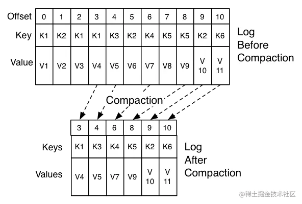 保证至少单个topic partition的数据日志中每个message key保留最新值。解决了应用程序崩溃、系统故障后恢复或者应用在运行维护过程中重启后重新加载缓存的场景。