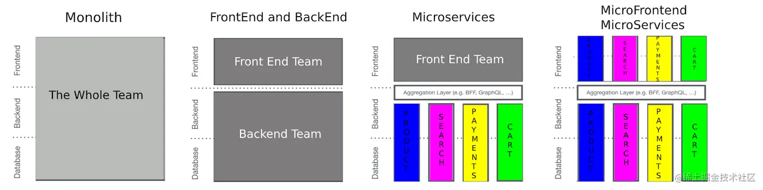 Scrum 指南说“最佳开发团队规模小到足以保持敏捷,大到足以在 Sprint 中完成重要工作”。微前端非常适合可以完全拥有堆栈的多个跨职能团队(微前端)从用户体验到数据库设计的应用程序。如果是电子商务网站,产品团队和支付团队可以同时在应用程序上工作,而不会互相踩踏。