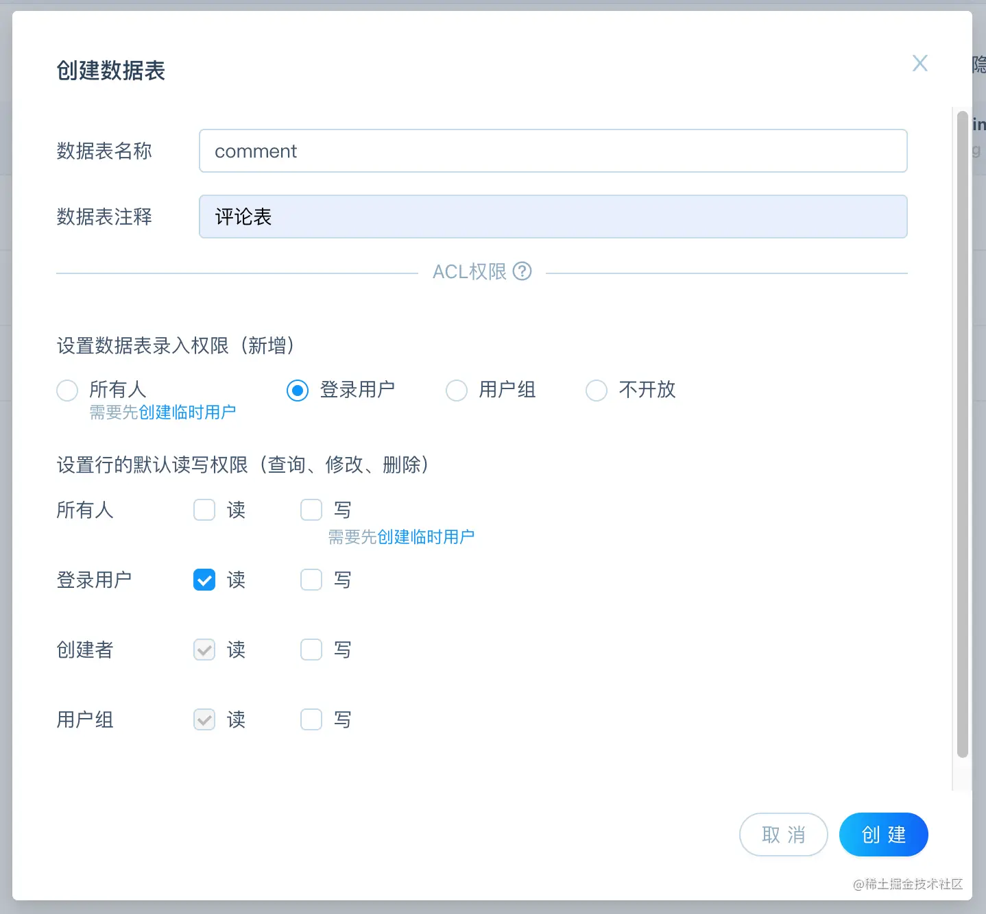 数据表的权限需要限制登录用户才可以录入,但所有人可读。