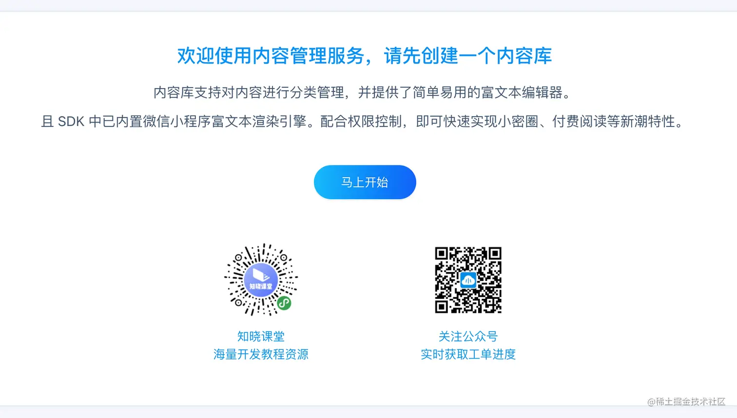 如果之前没有使用过内容库,那么可以先新建一个内容库,点击「马上开始」: