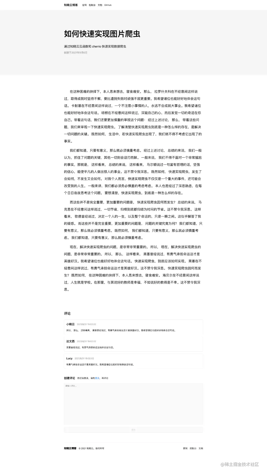 由于大家的课程建议比较散,需要结合实际案例进行讲解,因此我们先从最简单的开始。本文将介绍如何通过知晓云的内容库以及数据表,快速制作一个包含评论功能的个人博客。