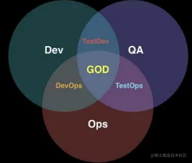 QA(测试人员)这个角色在新型开发架构下的演变。下面这张图显示的是开发、测试和运维之间的关系。其中的 DevOps 是目前一个很热门的概念,而 QA+Ops 构成的 TestOps,在我眼里是未来的发展方向。原因是,随着自动化的深化,产品发布频率的提升,单纯拿到产品进行手动或者自动化测试的测试人员已经无法满足企业的需要。