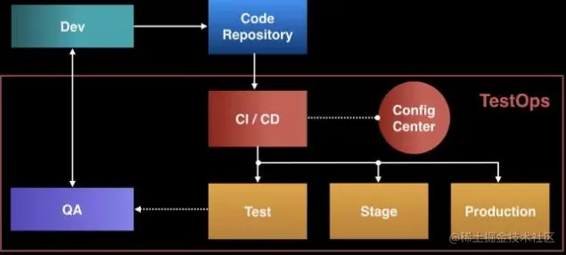 而在未来的 TestOps 模式下,TestOps 人员要承担起测试、持续集成/交付和最终推广的职责。