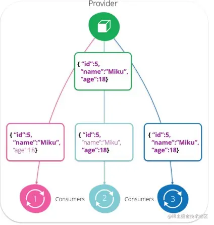 在下面这个例子中,我们会通过契约测试检查消费端和服务提供方之间交互的数据包(通常以 JSON 形式存在)中,是否包含了 ID、name 和 age 这三个条目(Item),以及这三个条目的数据结构是否符合预期。
