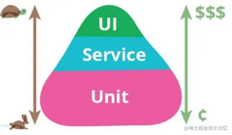 最底层的是单元测试(Unit Test),粒度最细,速度最快,维护成本也最低。往上是针对每种服务内部的各种模块、业务流程的测试。最上面是基于前端 UI 的测试,这部分的粒度最粗,范围最大(因为会覆盖大多数服务),但是维护成本最高,因为稍微有些细微的变化就可能需要调整脚本。而且,由于基于前端,需要设置很多响应时间和等待时间,所以速度越最慢。