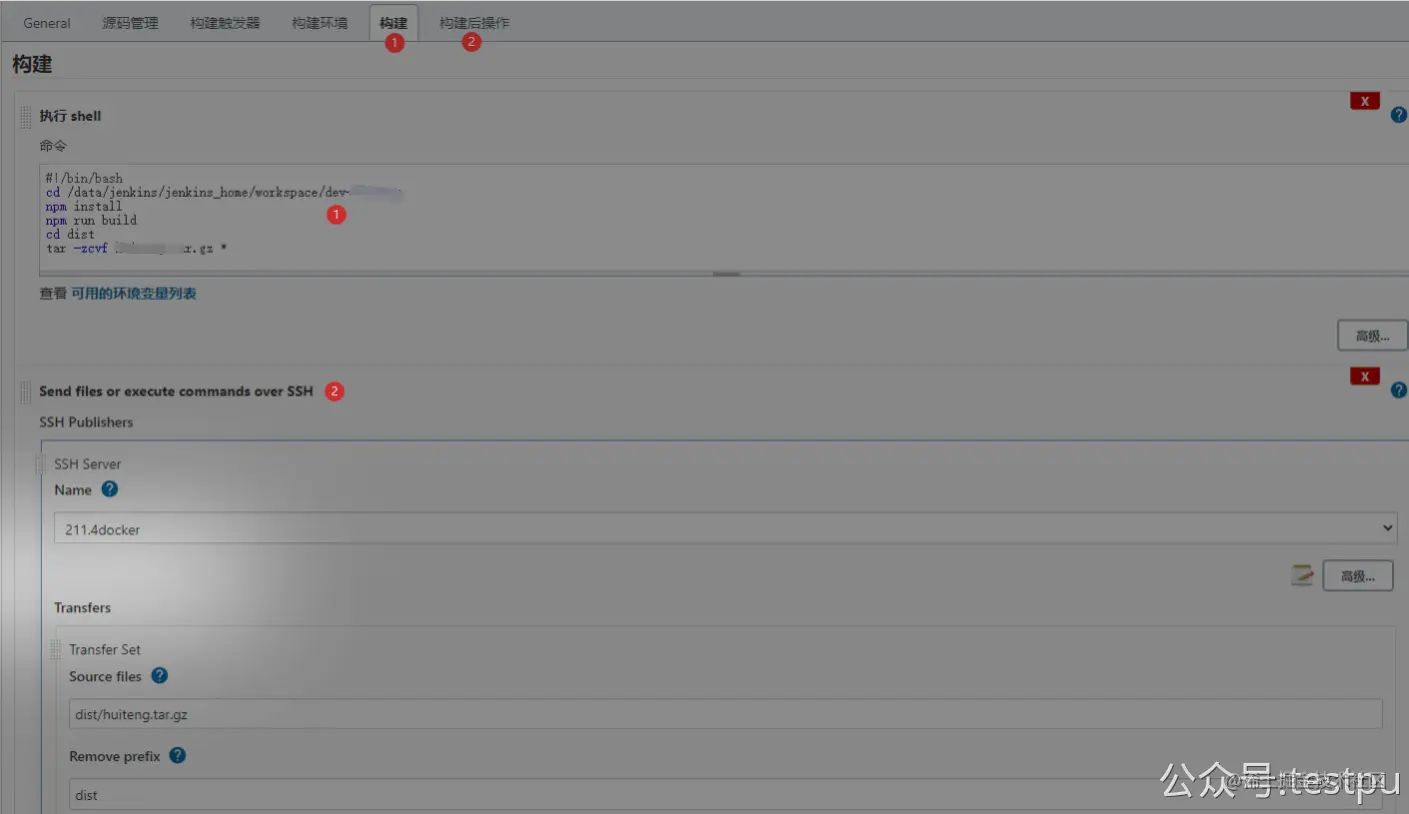 3、上面 Jenkins 打包配置我举例的是前端 vue 打包的结果,压缩成压缩包和上传部署到远程服务器的过程,如果api部署的话,流程大概一样,只是不需要压缩和解压而已。