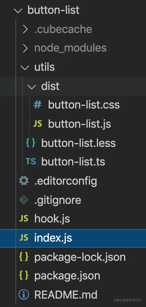 组件的文件组织结构如图1,其中dist为本地编译utils文件夹后的结果,编译的插件是