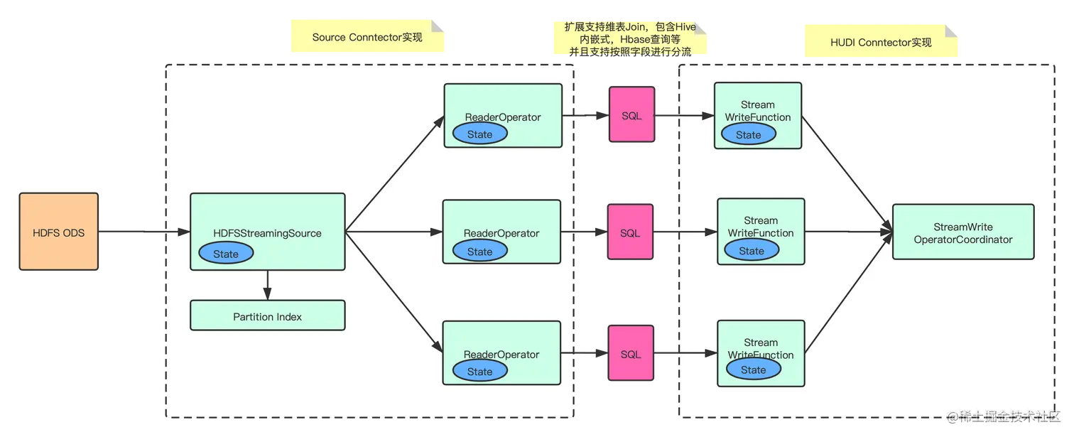 - 实现 HDFSStreamingSource 和 ReaderOperator,增量同步 ODS 的数据文件,并且通过写入 ODS 的分区索引信息,减少对 HDFS 的 list 请求;