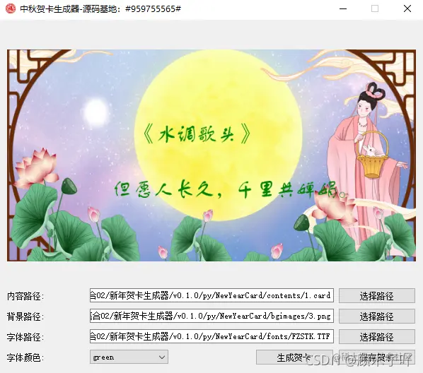 本文是基于pyqt5做的界面化中秋贺卡生成器。