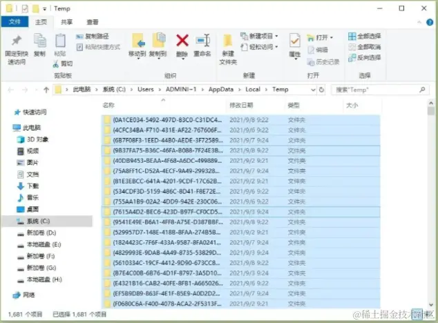 第二步:此时,你就会看到C盘的垃圾,这时全部选中,或按下快捷键【Ctrl+A】,最后按下Delet按键即可把C盘垃圾删除掉了。