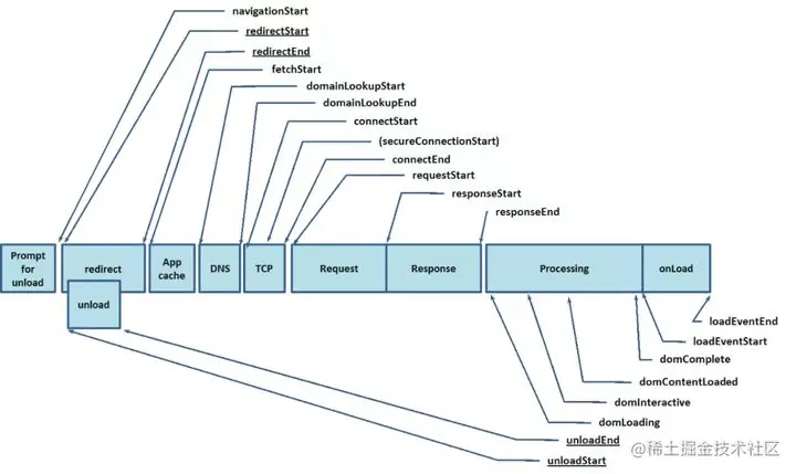 - navigationStart:表示从上一个文档卸载结束时的unix时间戳,如果没有上一个文档,这个值将和fetchStart 相等。