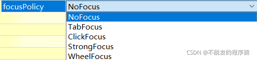 focusPolicy属性可以设置组件的焦点策略。设置参数说明如下所示: